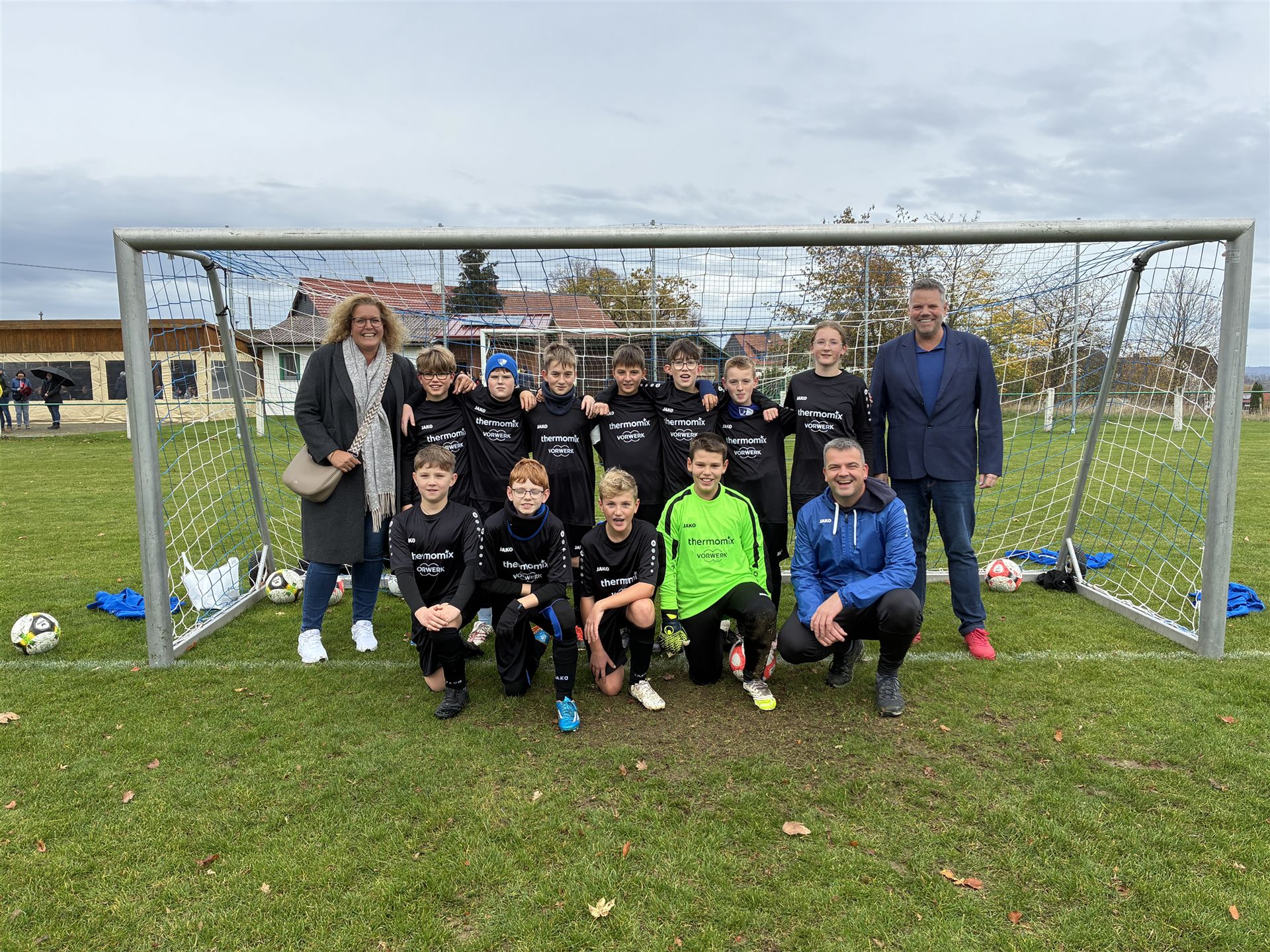 Große Freude herrschte bei den D-Junioren des JFV Ohmtal Homberg, als die Nachricht eintraf: Ein kompletter Trikotsatz wurde beim Vorwerk-Gewinnspiel gewonnen! Die Übergabe fand im Rahmen des letzten Spieltages der D-Junioren am 1.11.2025 statt. Vorwerk-Thermomix -Bezirksleiterin Steffi Domesle und Teamleiter Clive Pichler-Möbus ließen es sich nicht nehmen, persönlich vorbeizukommen und den Trikotsatz zu überreichen. In einem kurzen Gespräch betonte er die Bedeutung von Engagement im Jugend- und Breitensport und berichtete, das JFV Ohmtal Homberg der einzige Verein im Bezirk gewesen sein, der gewonnen hat.